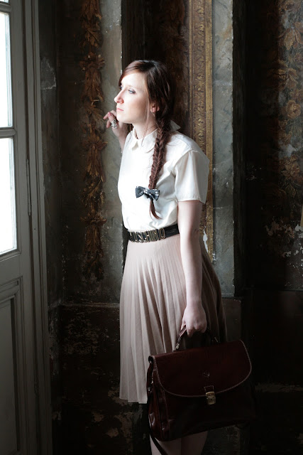 @ V. : bah V. le but c'était justement d'apporter au shoot un coté retro, pour aller avec le sac ;) J'étais moi même étudiante en littérature, et TMTC que je m'habillais pas comme ça lol
