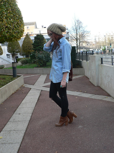| H&M beanie and boots / Old denim shirt given by a friend / Primark jeans / Clif bag |